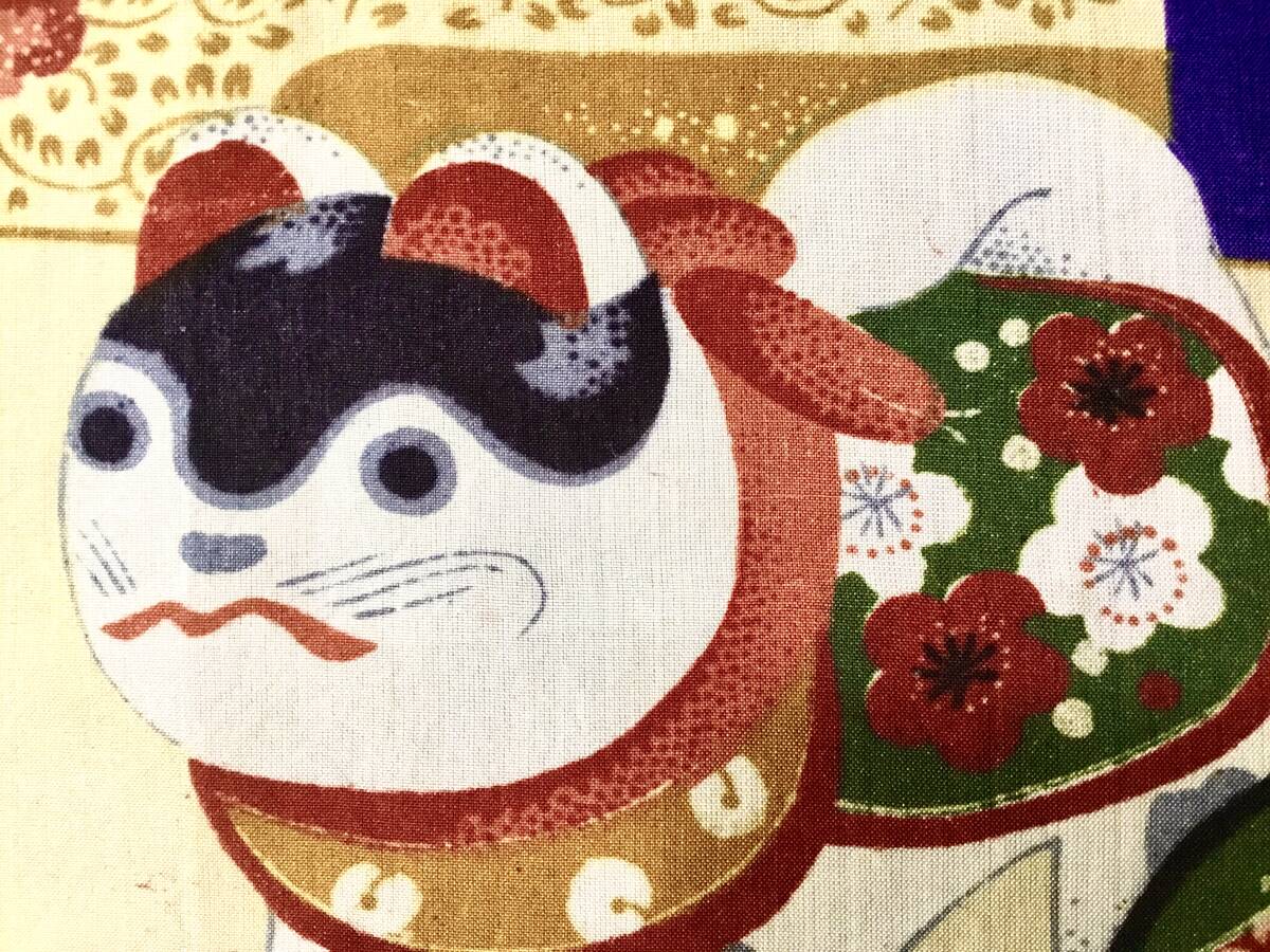 - 古布856・絹ハギレ(犬張子や鯛車*2枚) 時代着物地