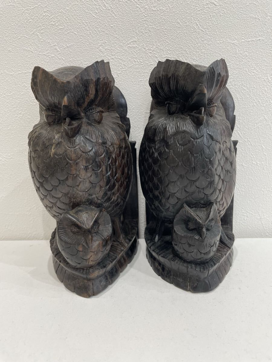 - 木製 フクロウ置物セット サービス54点セット鳥の置物1点サービス