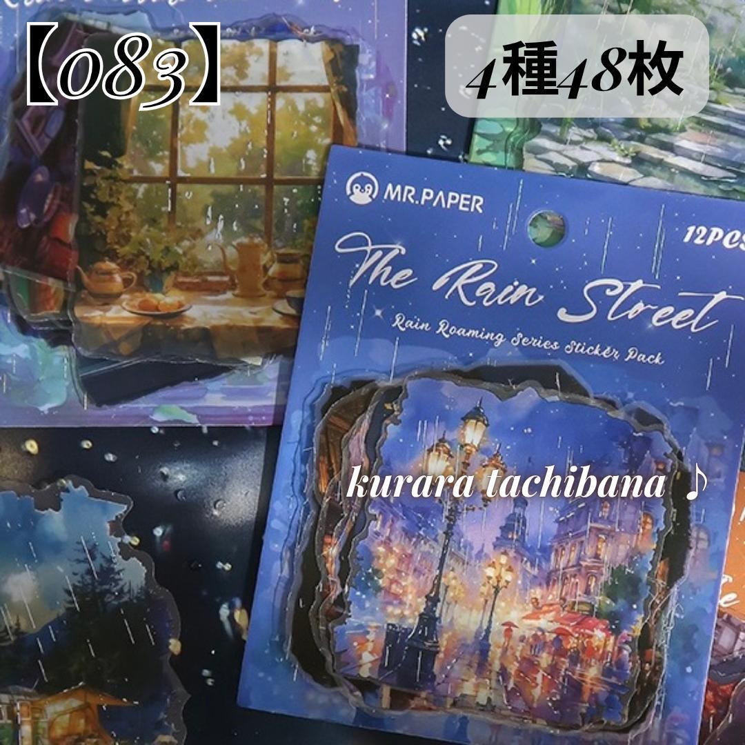 > 【083】シール ステッカー 雨 銀箔押し PET コラージュ素材 装飾 ジャンクジャーナル スクラップブッキング アルバム デコ 手帳 4種48枚