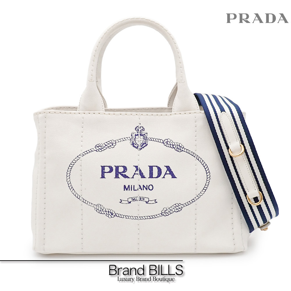 > 未使用品 PRADA プラダ カナパ ハンドバッグ ショルダーバッグ レディース キャンバス BIANCO ホワイト 1BG439