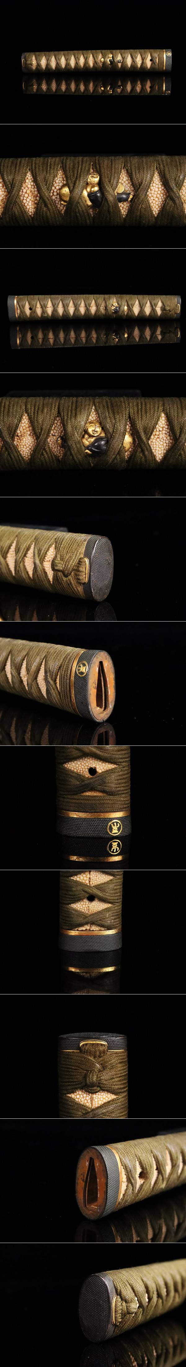 ![【櫻】時代武具 日本刀 柄前 鮫皮巻柄赤銅金象嵌家紋入縁頭 布袋目貫 全長24.2cm 刀装具[77238qr]拍卖](http://yahooimg2.ymibuy.cn/i/auctions.c.yimg.jp/images.auctions.yahoo.co.jp/image/dr000/auc0108/user/fec68576102fa4b86821445f0136d0af471639d48d6ee83083e341083f3cf829/i-img1200x1023-17542963883078lkfxnu35.jpg)