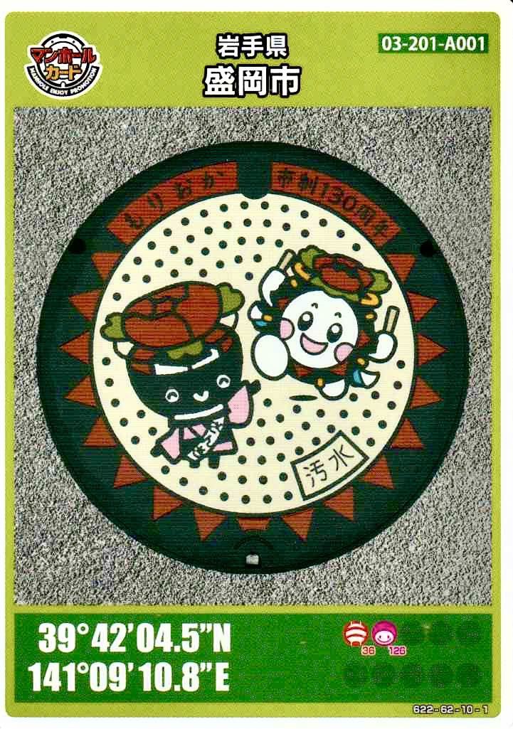 - ★マンホールカード 03-201-A001 岩手県 盛岡市★非売品 わんこ兄弟 さっこちゃん ゆるキャラ★