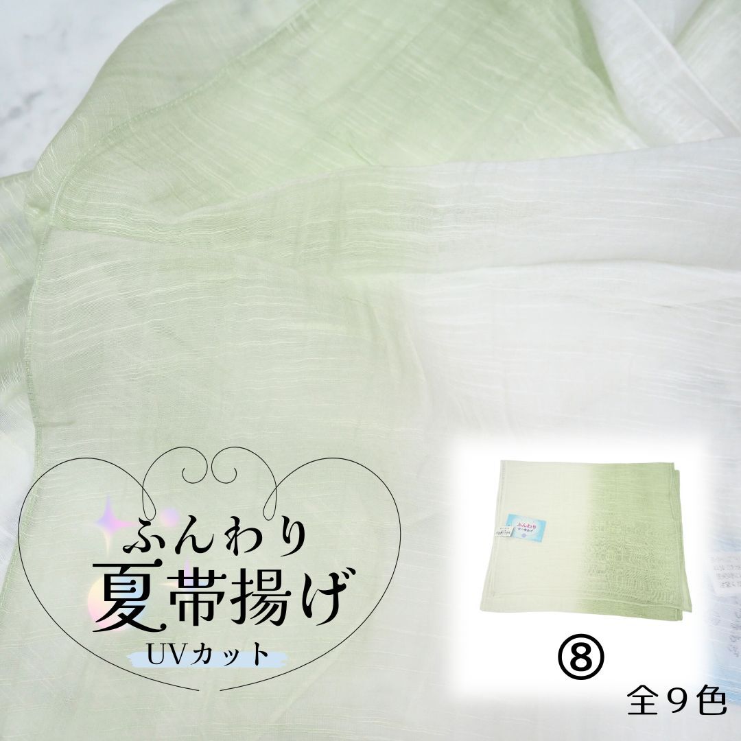 - ふんわり夏帯揚げ 8 抹茶色×生成 UVカット シルク混ショール 帯揚げ 夏用 全9色