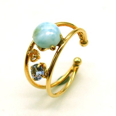 - ER196:K18YG ラリマー ホワイトトパーズ タンザナイト イヤーカフ(片方)