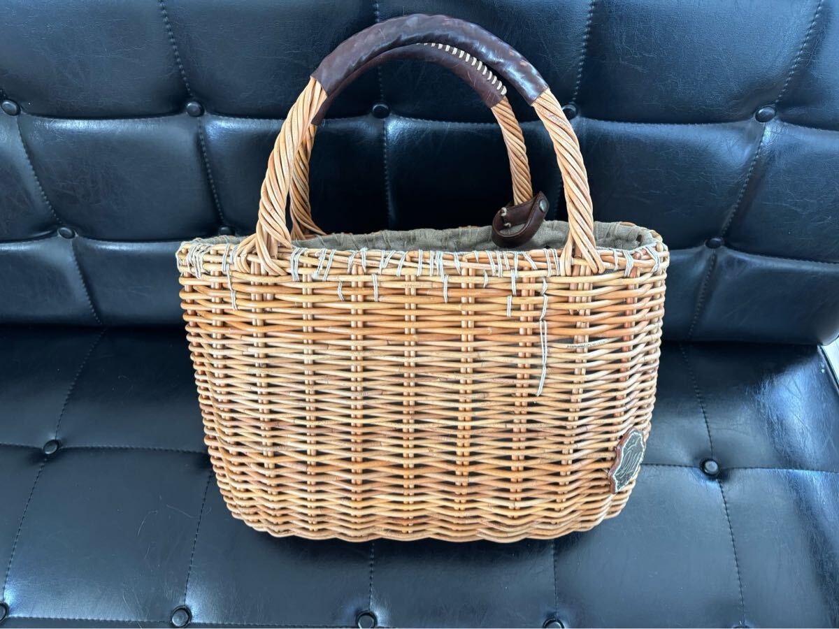 - エバゴス ebagos トートバッグ - レザー ライトブラウン×黒 かごバッグ バッグ バスケット籐かご