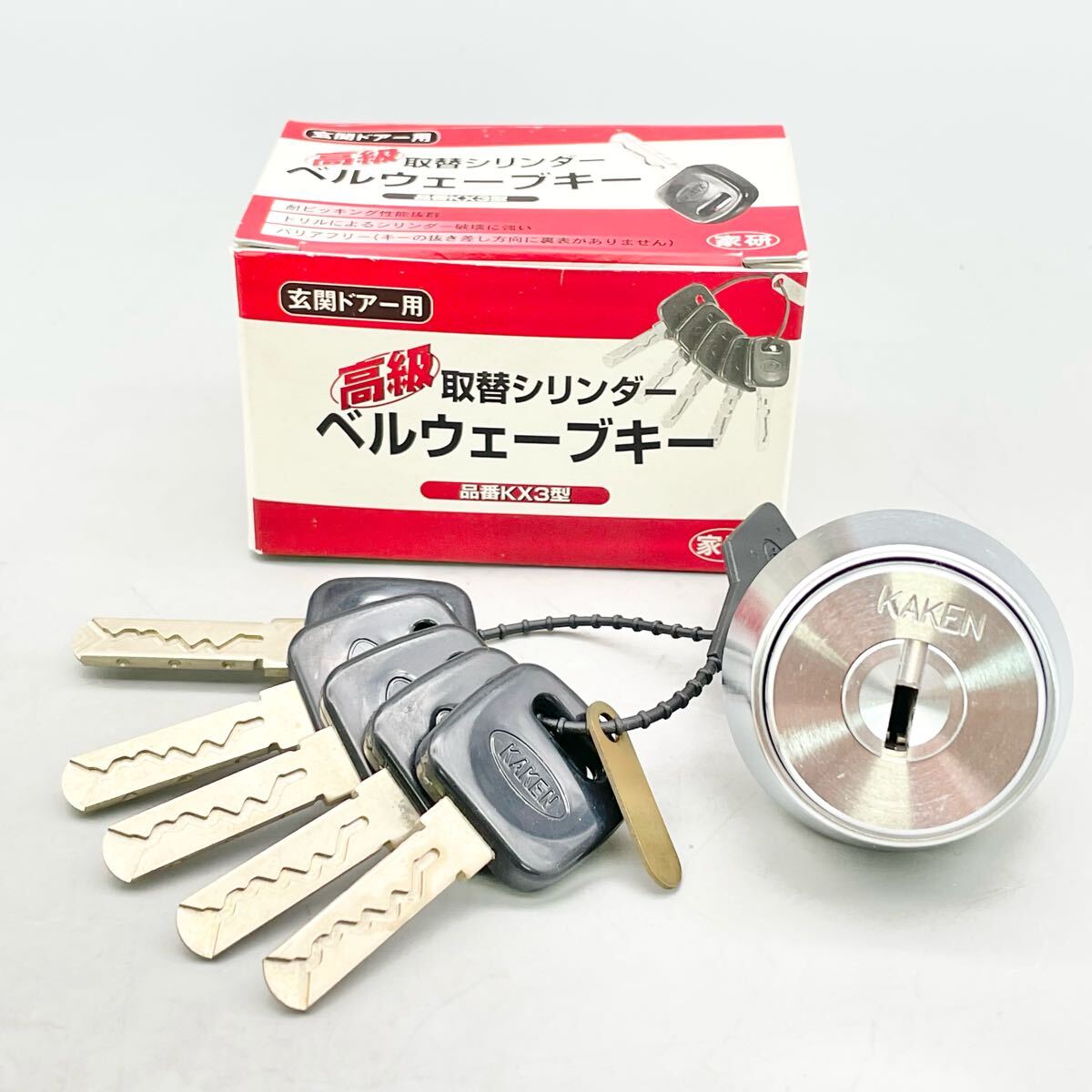 > [新品 未使用品] 家研販売 ベルウェーブキー KX3-LA 扉厚 33-42mm KAKEN 玄関ドア用 高級 取替シリンダー MIWA 防犯 鍵 金物屋 在庫品