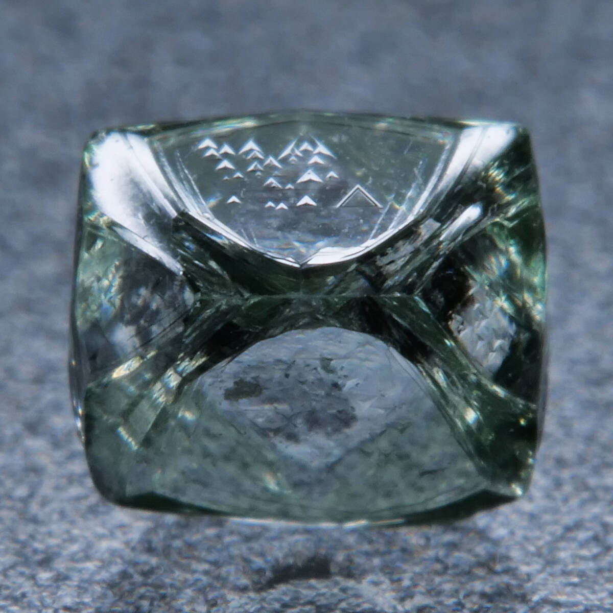 - 美結晶 レアカラー【鉱物 標本 金剛石 結晶 原石】南アフリカ 天然 グリーン ダイヤモンド 八面体 ソーヤブル トライゴン 0.347ct