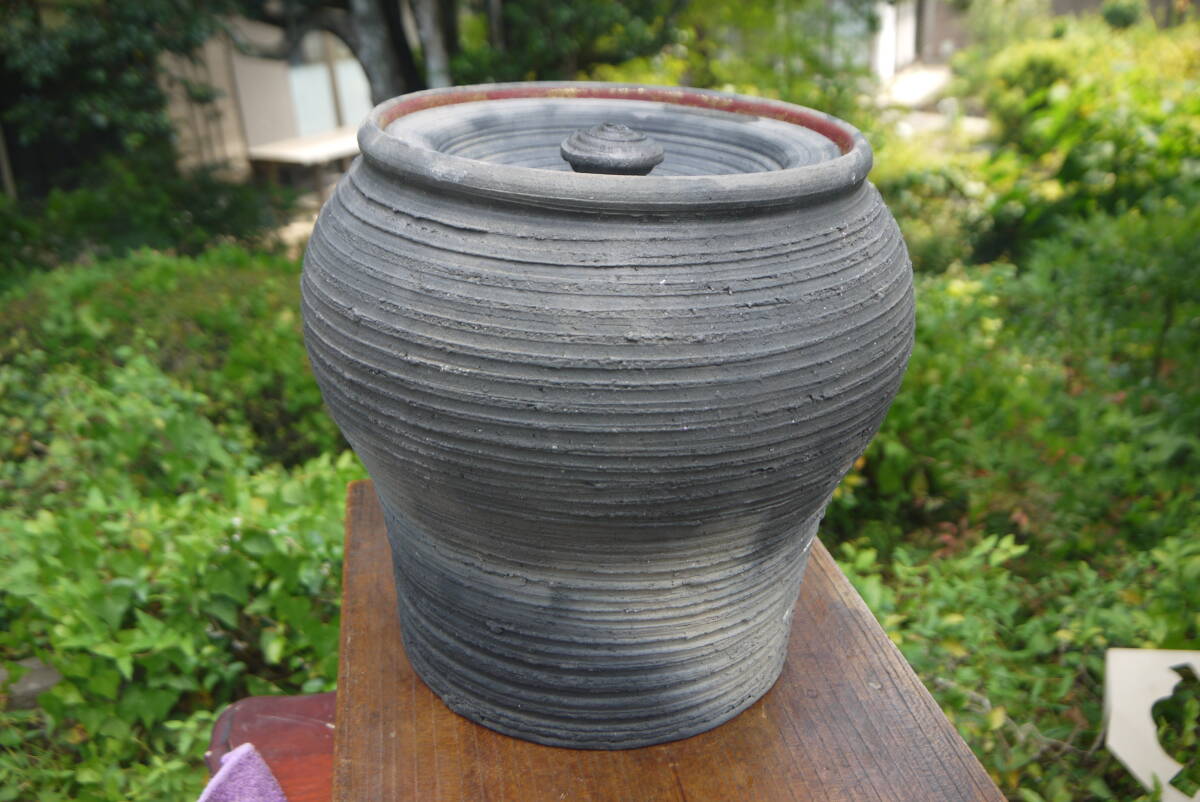 - ★【A50803】坂田甚内 黒陶種壺型水指 花瓶 花器 未使用