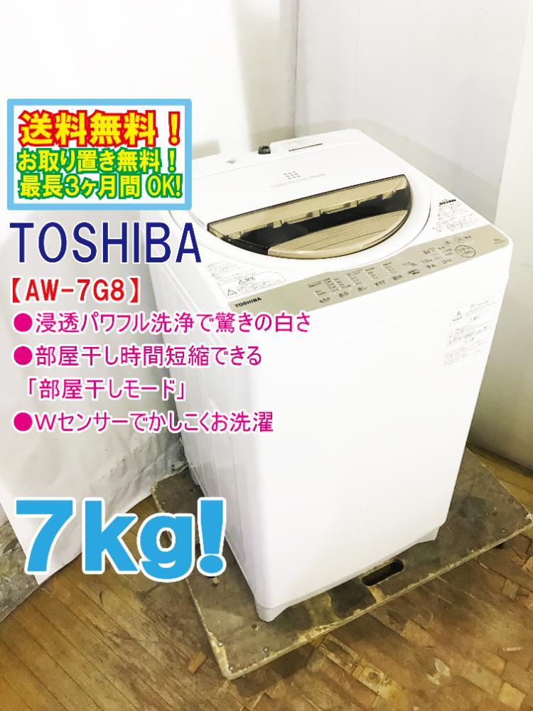> ◆送料無料★ 中古★東芝 7㎏「浸透パワフル洗浄」で驚きの白さ!からみまセンサー搭載 洗濯機【◆AW-7G8】◆BXJ