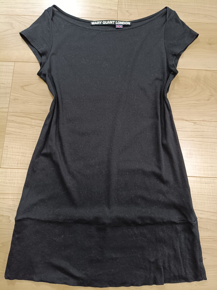 > マリークワント MARYQUANT★ 半袖ロング Tシャツ ワンピース チュニック フレンチスリーブ カットソー M 黒 トップス