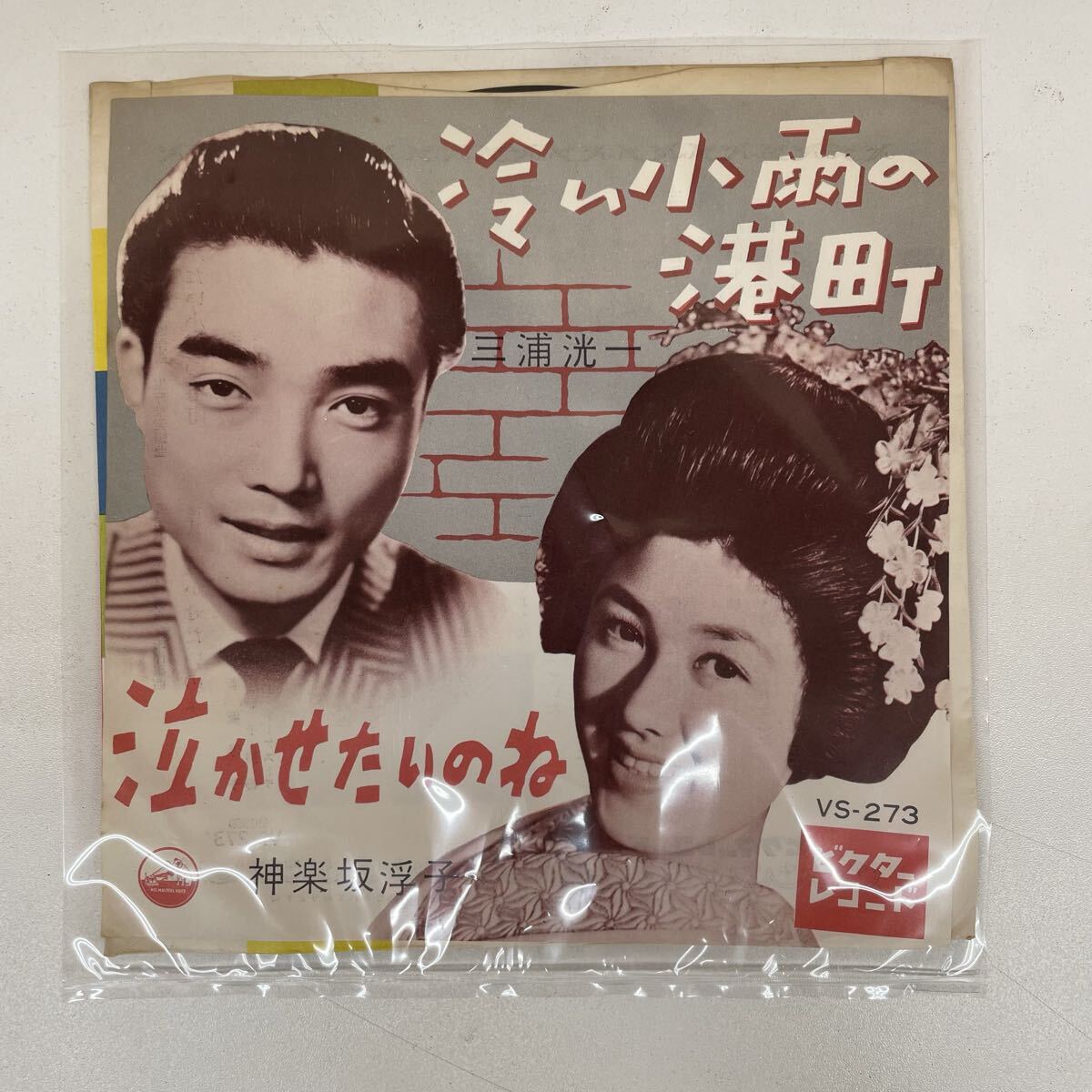 - 【C-1②三浦洸一 冷たい小雨の港町 / 神楽坂浮子 泣かせたいのね 7インチ EP レコード ビクターレコード 流行歌 演歌 VS-273 4317-1