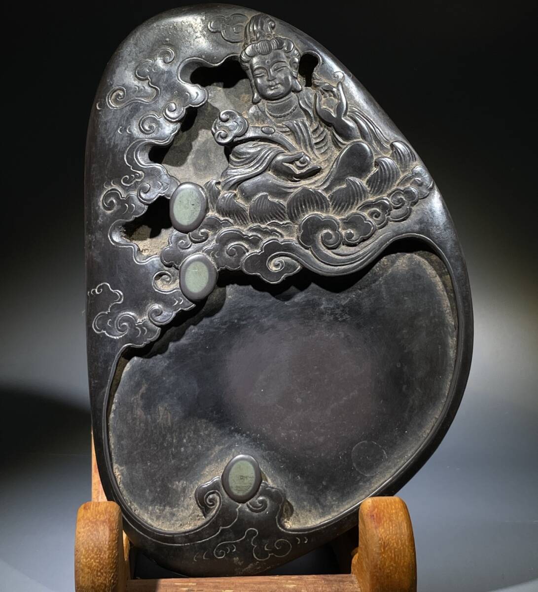 - 旧蔵 中国四大名硯-端硯 正宗平安如意端硯 寓意深刻 彫工精細 包漿醇厚 古硯 文房硯 時代硯 極細工 中国古玩 骨董品 古美味 8.6