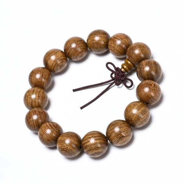 - [EasternStar] 金絲檀 ゴールデン サンダルウッド ブレスレット お守り 数珠 念珠 木珠 15mm 15玉