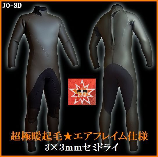 > 【極暖★起毛素材 エアフレイム仕様】セミドライ3×3mm インナーネックバリア付き 【サイズ選択可】 JO-MODEL 4 サーフィン/ウェットスーツ