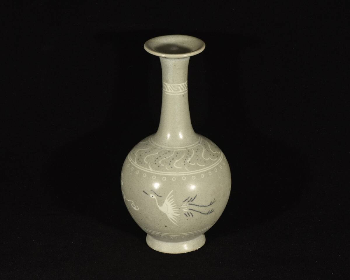 - ■TC155■高麗青磁 象嵌雲鶴紋長頚浄水瓶・孤品・時代物 古玩 唐物 古陶磁器■