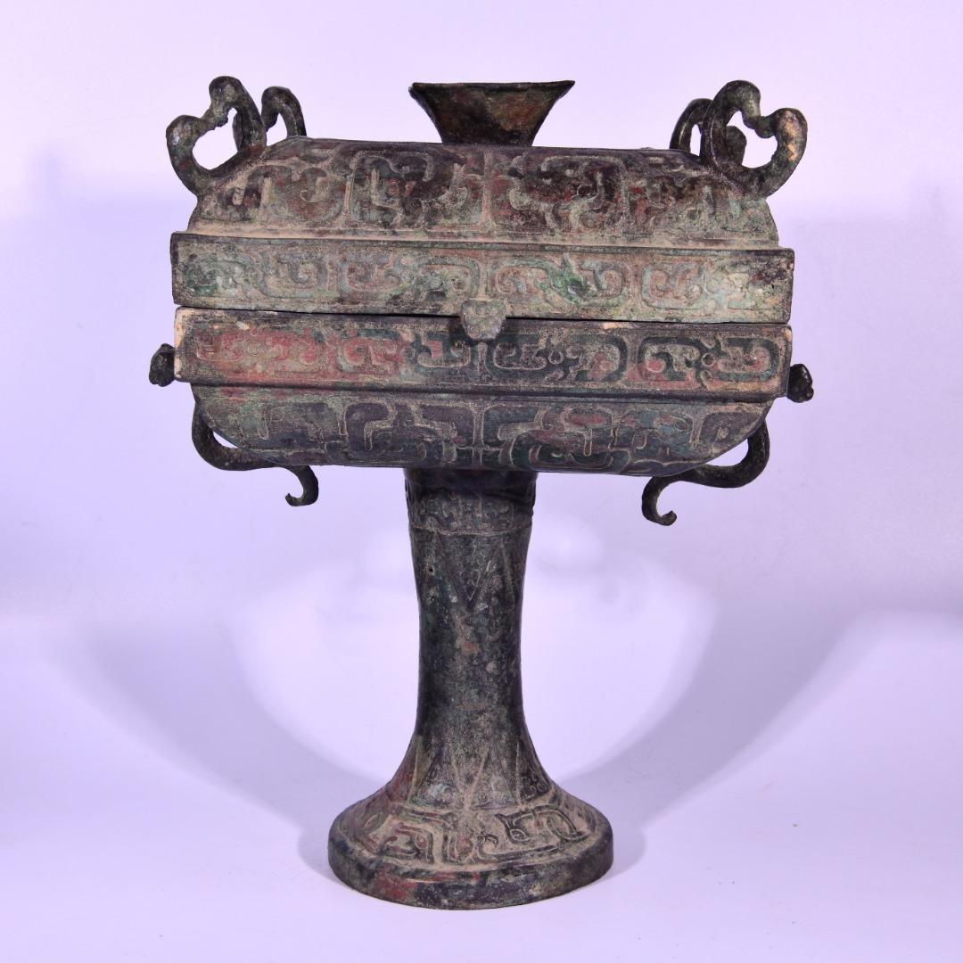 - ■TX140■商周時代 青銅器 龍紋銘文方豆 絶品 時代物 古玩 唐物 古陶磁器■