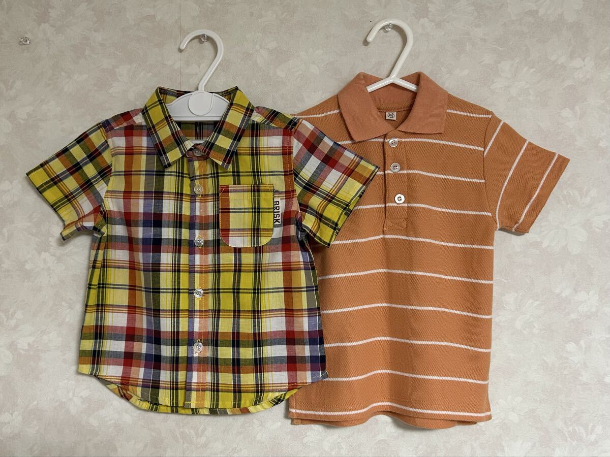 - 80cm チェック柄 半袖シャツ ストライプ ポロシャツ セット ベビー キッズ