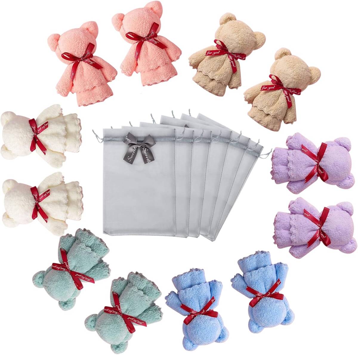 - 心を包むタオルのベア ハンカチ プチギフト くまさん タオル タオルハンカチ レディースラッピング済 くまちゃん12個