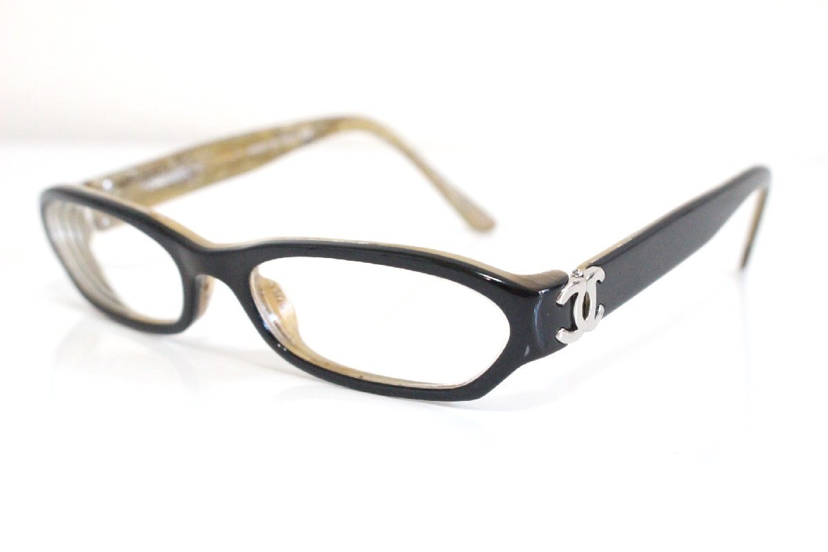 - シャネル CHANEL 3038 ココマーク フレーム 眼鏡 めがね メガネ 黒 ブラック ベージュ マーブル シルバー 度入り K885/T2