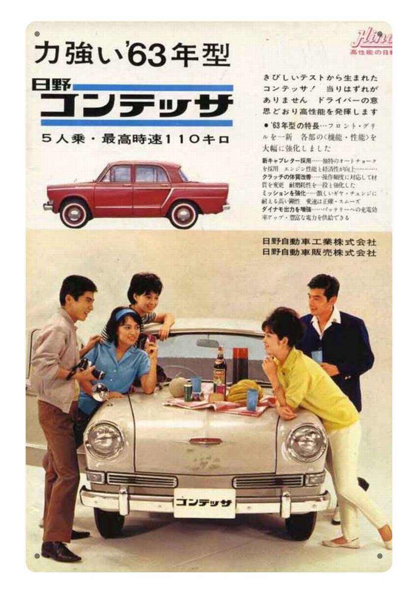 - 大型60cm■日野コンテッサ 1963年 懐かしい看板シリーズ■メタル看板■送料無料・匿名配送