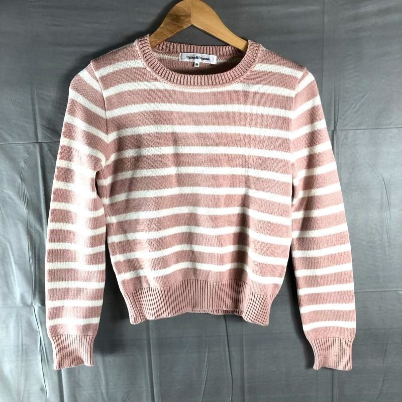 - ピンキーアンドダイアン Pinky&Dianne ニット 長袖 ボーダー Uネック 日本製 白 ピンク 38サイズ 2025061400291