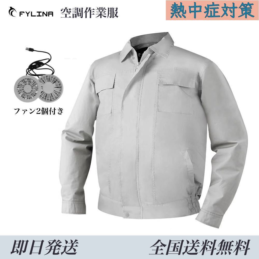 > FYLINA 空調作業服 空調服 ファン2個付き 空調ウェア 冷却服 クーラー服 空調扇風服 3段階風量調節可 大風量 低騒音 熱中症予防 S M