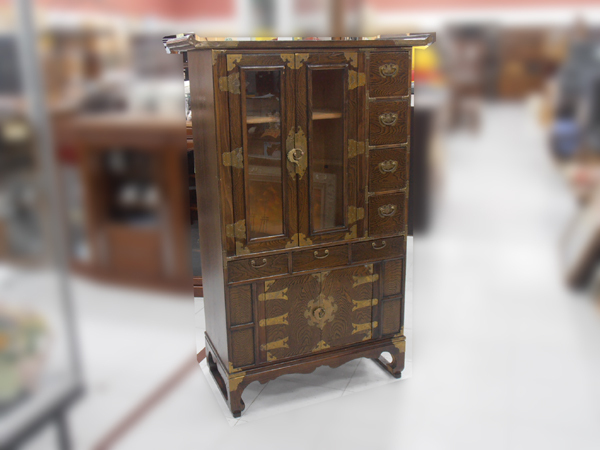 李朝風家具 キャビネット 収納棚 木製 カギ付き 小物入れ チェスト 飾り棚 幅約85.5㎝ 中古 現状品 苫小牧西店