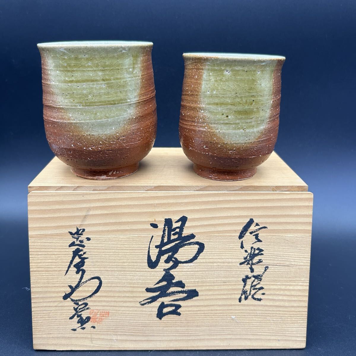 - 信楽焼 忠左衛窯 夫婦 ペア 湯呑 湯飲み 清宇 茶器 陶器 エ16