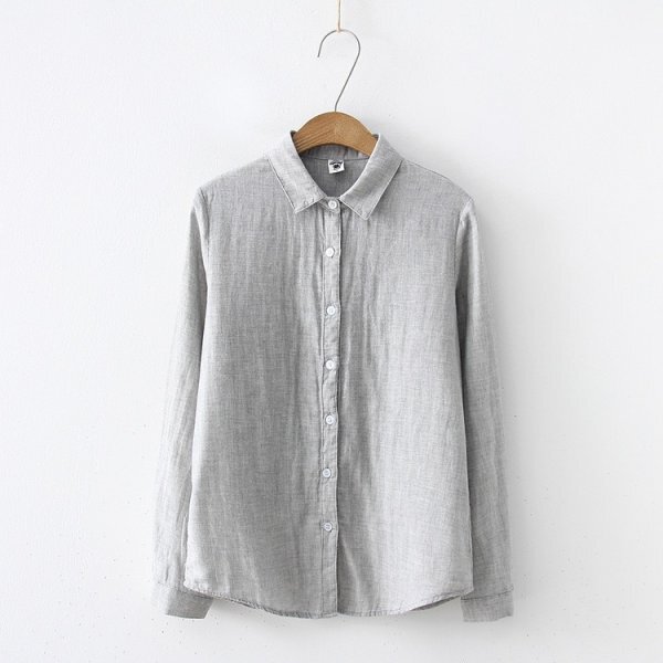 - c 2508 ダブルガーゼ ワイシャツ フリーサイズ チュニック トップス ナチュラル 綿100% 通気性肌触り抜群 サラサラ ゆったり グレー