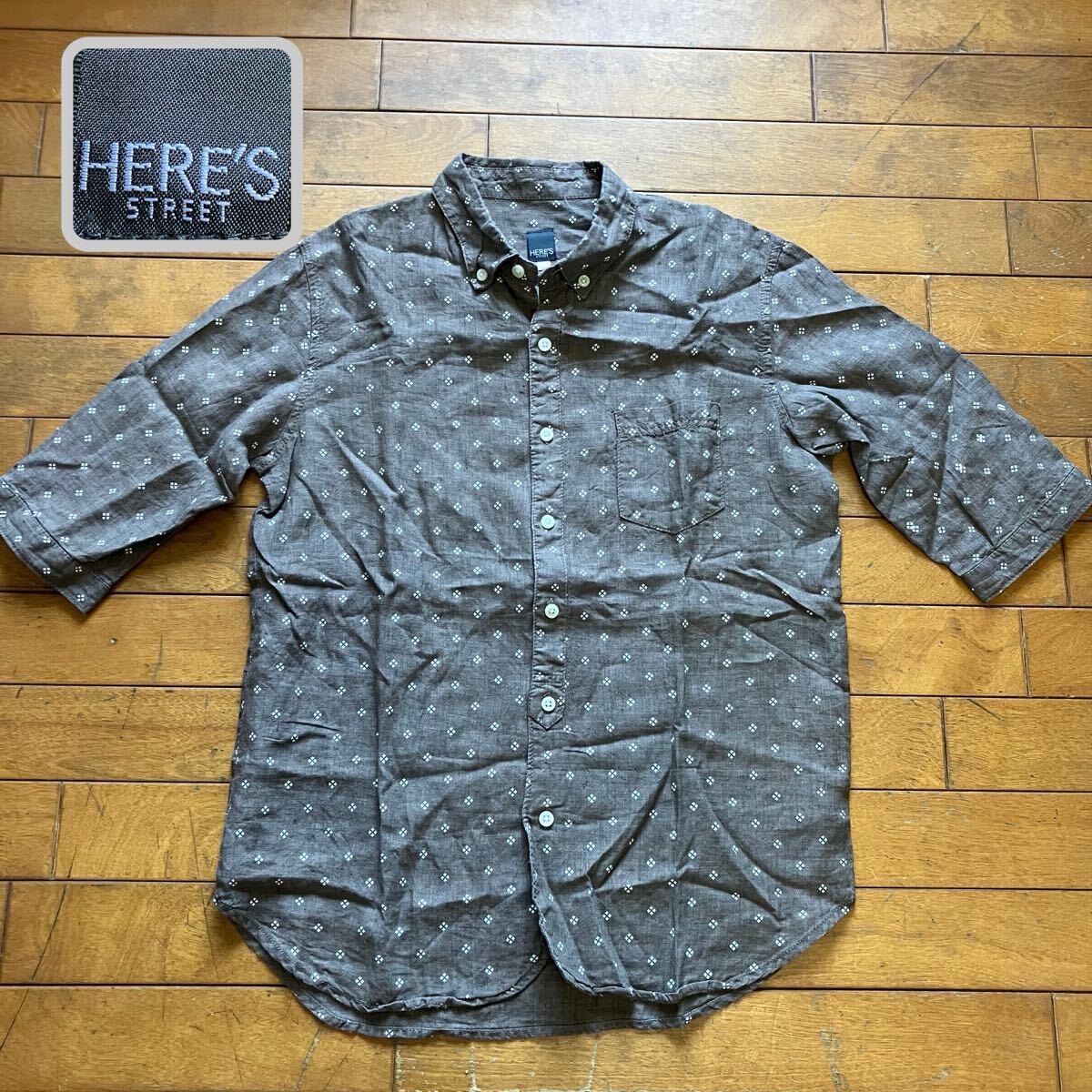 - ☆【 HERE'S 】★ 麻100% 5分袖総柄五分袖BDシャツ★サイズL