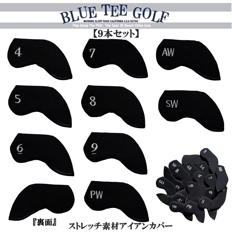 > ■②【9本セット:4-PW/AW/SW】ブルーティーゴルフ ストレッチ素材 アイアン用ヘッドカバー販売 【BLUE TEE GOLF】SIC-01