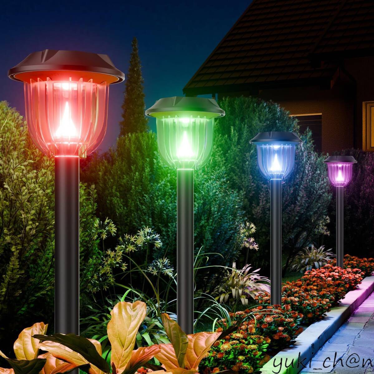 > ソーラーライト 屋外 【4個セット】防水 IP65 おしゃれ 明るいソーラーガーデンライト 七色調節可能、自動点灯/消灯 埋め込み 七色