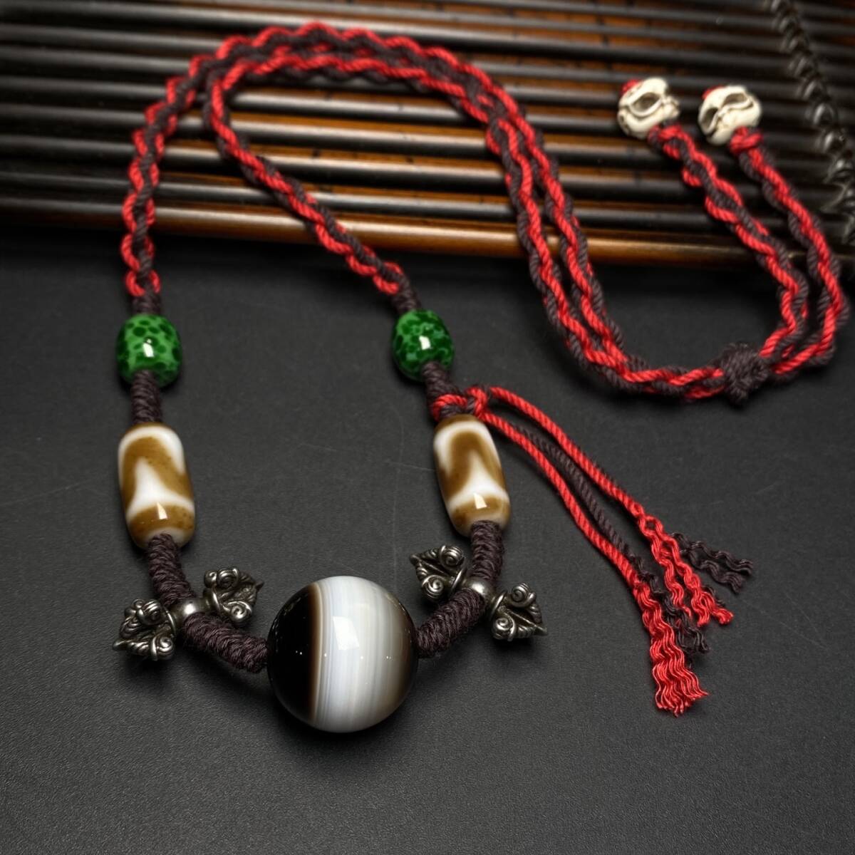 - 多宝閣■ 206269 和田玉【瑪瑙のビーズと虎牙石のビーズを組み合わせたもの】 印章 彫刻品 珍品旧蔵 伝世家珍 極上珍品 孤品