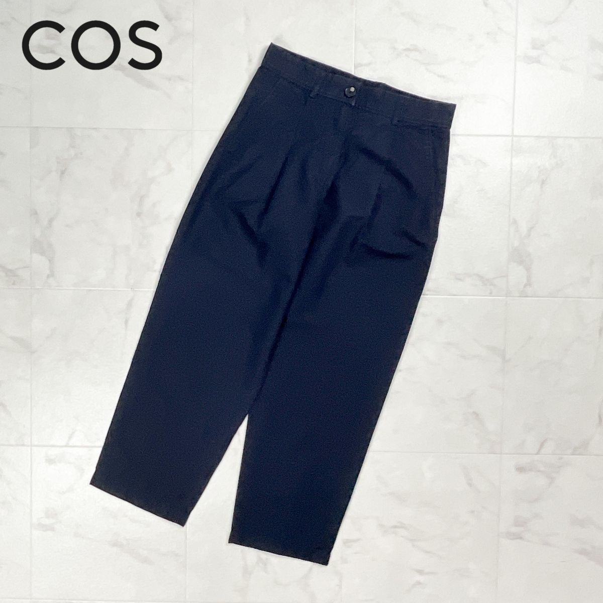 - COS コス コットン・リネン混 テーパードワイドパンツ ワークパンツ ボトムス レディース ネイビー 紺 サイズ34*FD1134