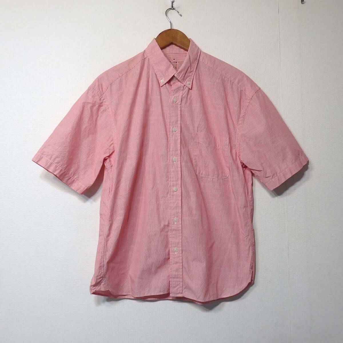 > 【送料無料】無印良品半袖シャツ/Mサイズ メンズ ストライプ柄 美品 MUJI ボタンシャツ