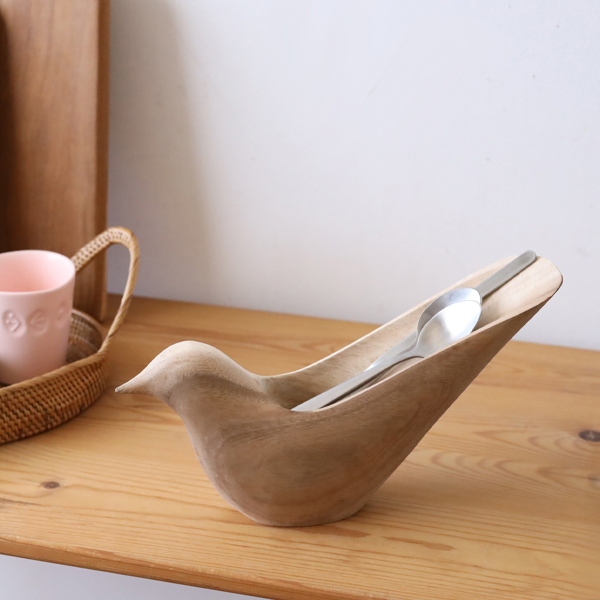 - 最終SALE 再制作 天然無垢ウッド 手彫り木彫りART トリ ペンスタンド ペンホルダー カトラリーケース 置物 W79L