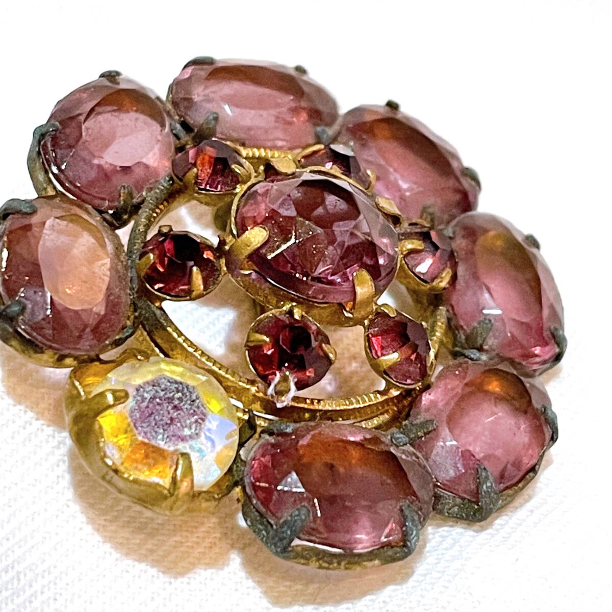 - アンティーク アールデコ ブローチ ラベンダー ストーン お花 ピン 1930's 1940's ヴィンテージ パープル ビンテージ ジュエリーアメジスト