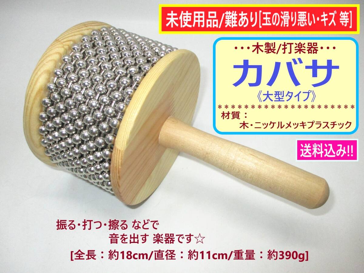 > 難あり 未使用 木製 打 楽器 カバサ 大型 B 珠の滑り悪い キズ パーカッション 手 持ち シェーカー 音 鳴る 振る 打つ 擦る 鳴り物 海外製