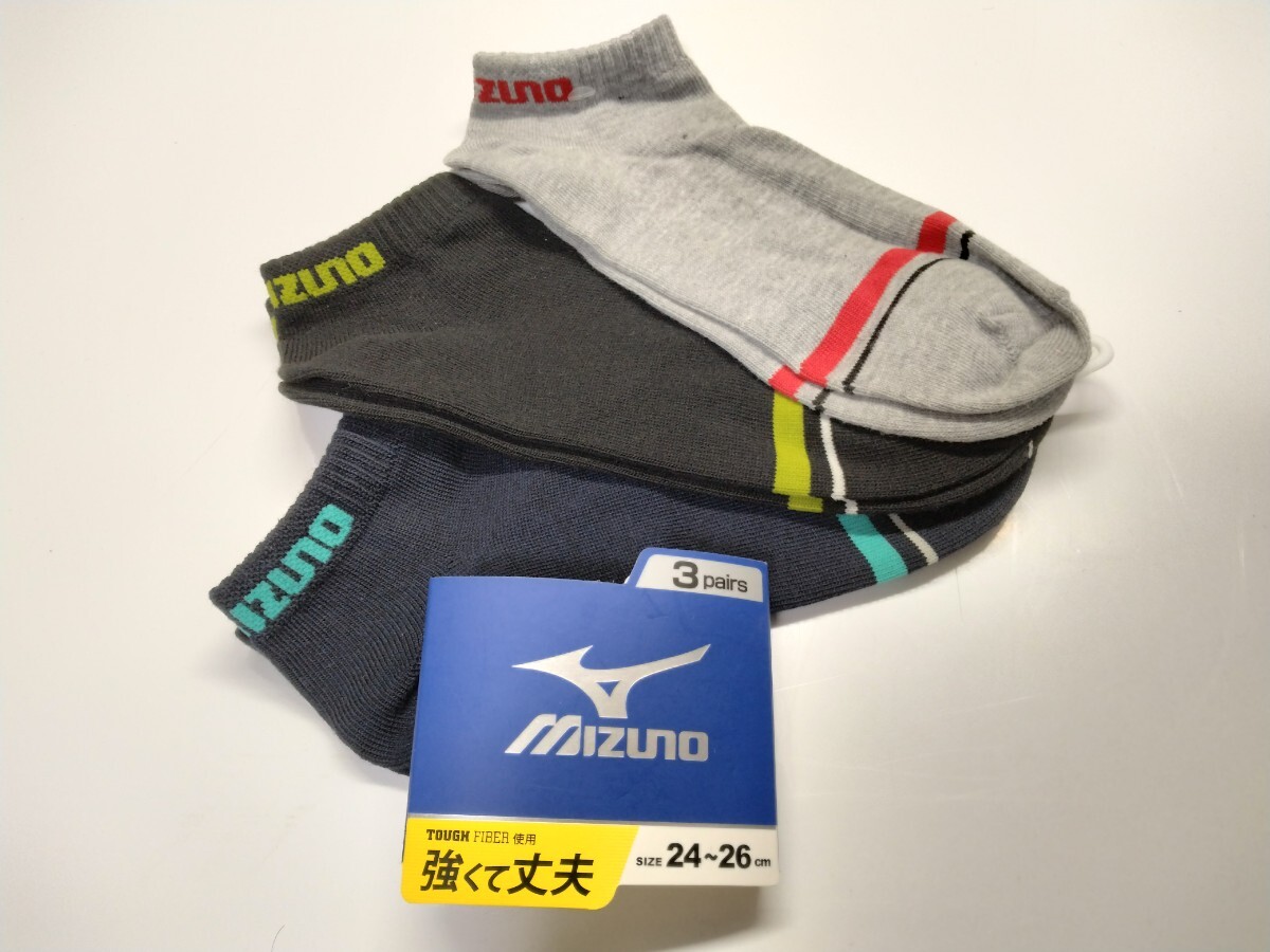 - 送料無料!★ミズノ ショートソックス3足組★新品★24cm~26cm★強くて丈夫★03