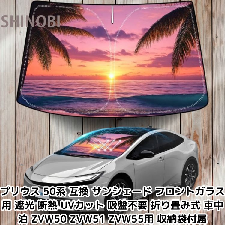 > プリウス 50系 互換 サンシェード フロントガラス用 遮光 断熱 UVカット 吸盤不要 折り畳み式 車中泊 ZVW50 ZVW51 ZVW55用 収納袋付属