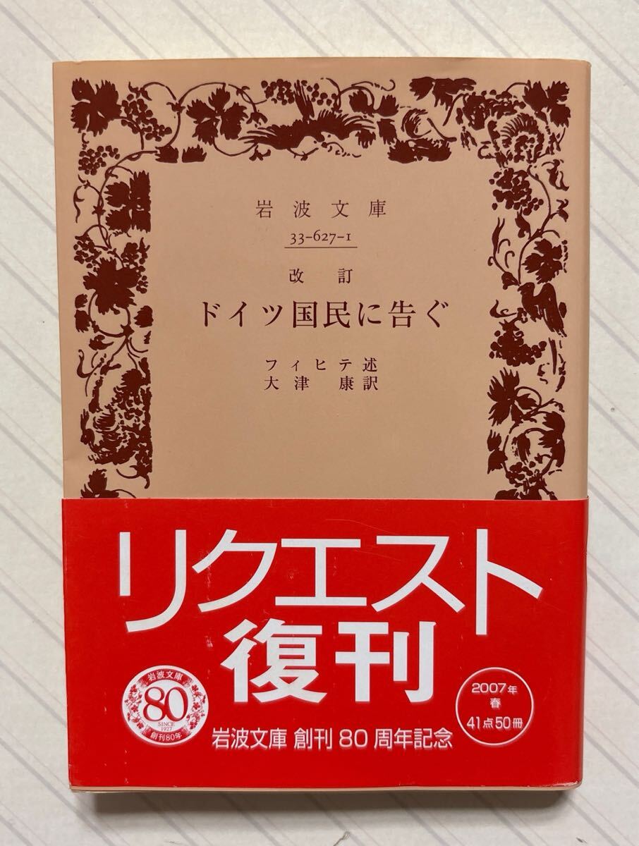 - 改訂 ドイツ国民に告ぐ フィヒテ/述 大津康/訳 岩波文庫 リクエスト復刊