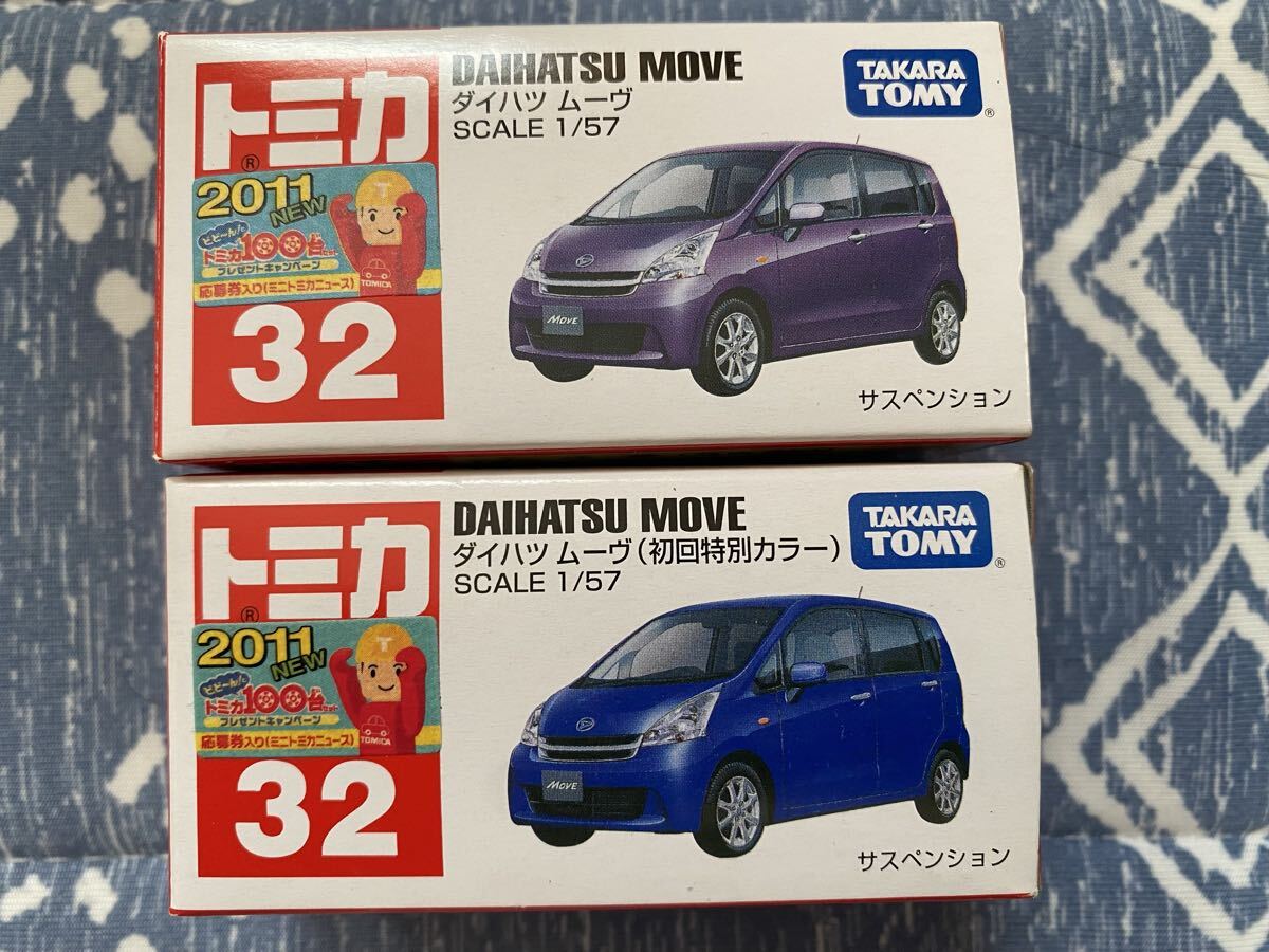 - トミカ 赤箱32 ダイハツ ムーヴ 標準品と初回特別カラー 2種類まとめて