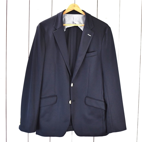 ・(株)ワールド。型番:AB070-48936JE。春夏対応。ポリエステル100%。2つボタンシングル。フラップポケット。袖口3つボタン。開き見せ。背抜き。ノーベント。ネーム刺繍なし。この機会に是非!
