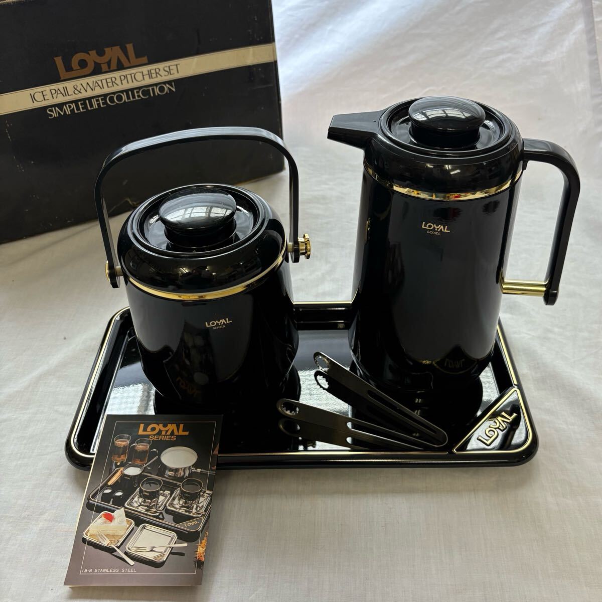 - アイスペール&ウォーターピッチャーセット 未使用? 箱付き トレー付き ロイヤル? 黒 ゴールド ウイスキー お酒 昭和レトロ 送料無料