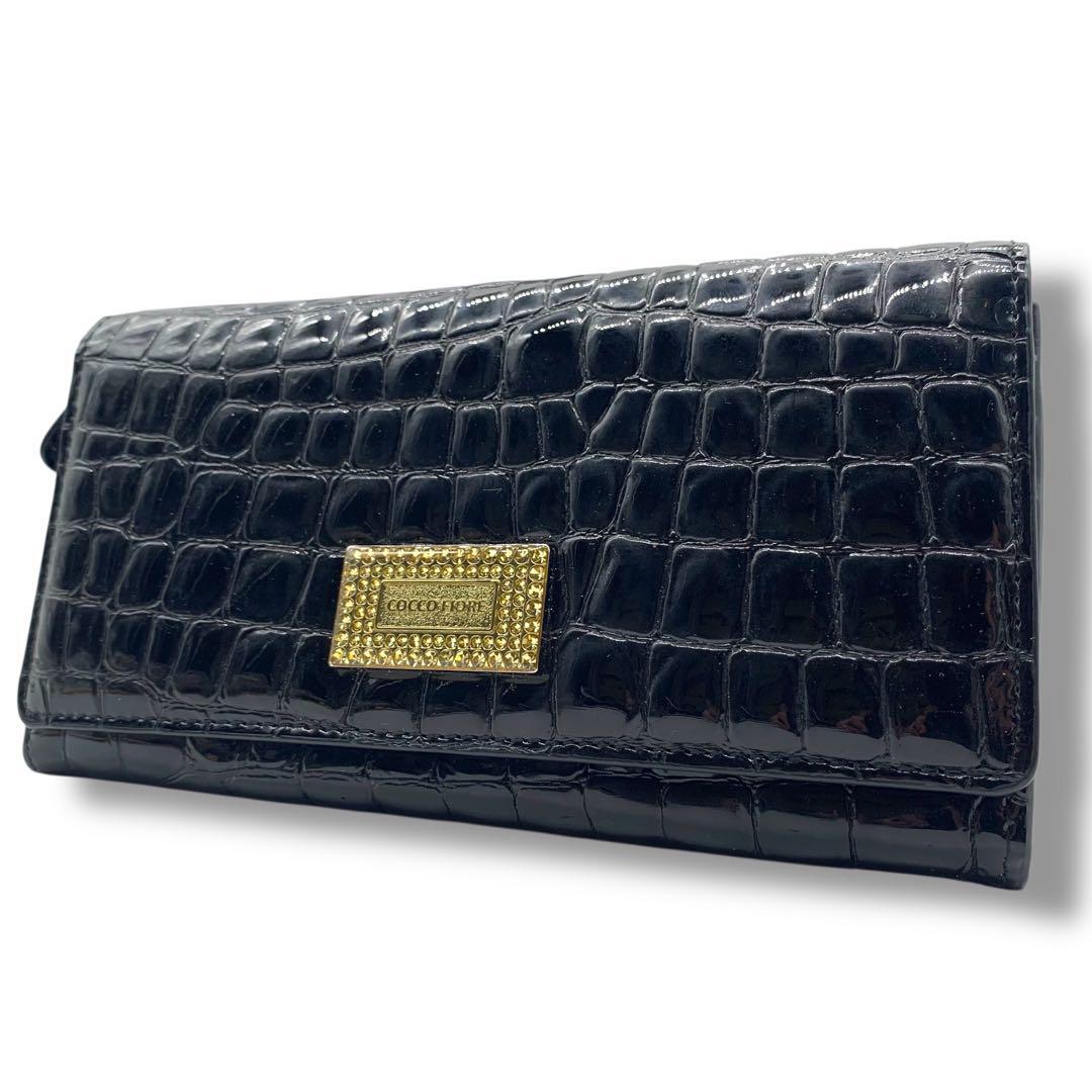 - 極美品! コッコフィオーレ クロコ型押し 折りたたみ 財布 黒