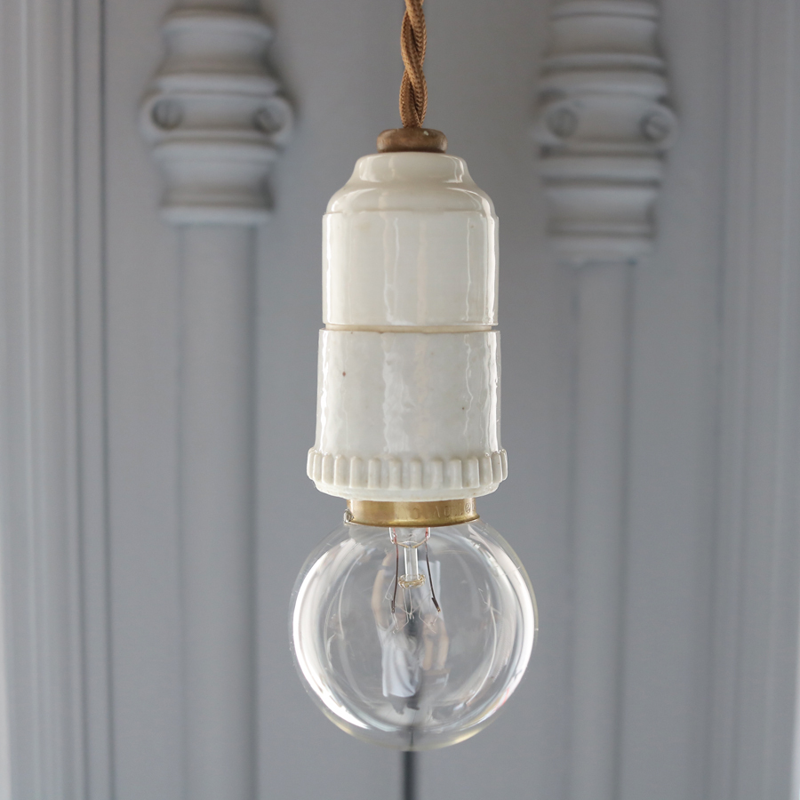 > 白陶器×木製 裾ストライプ ソケット フランス アンティーク 陶器 ランプ D* /磁器 北欧 照明 真鍮 レトロ アトリエ アンティーク FT