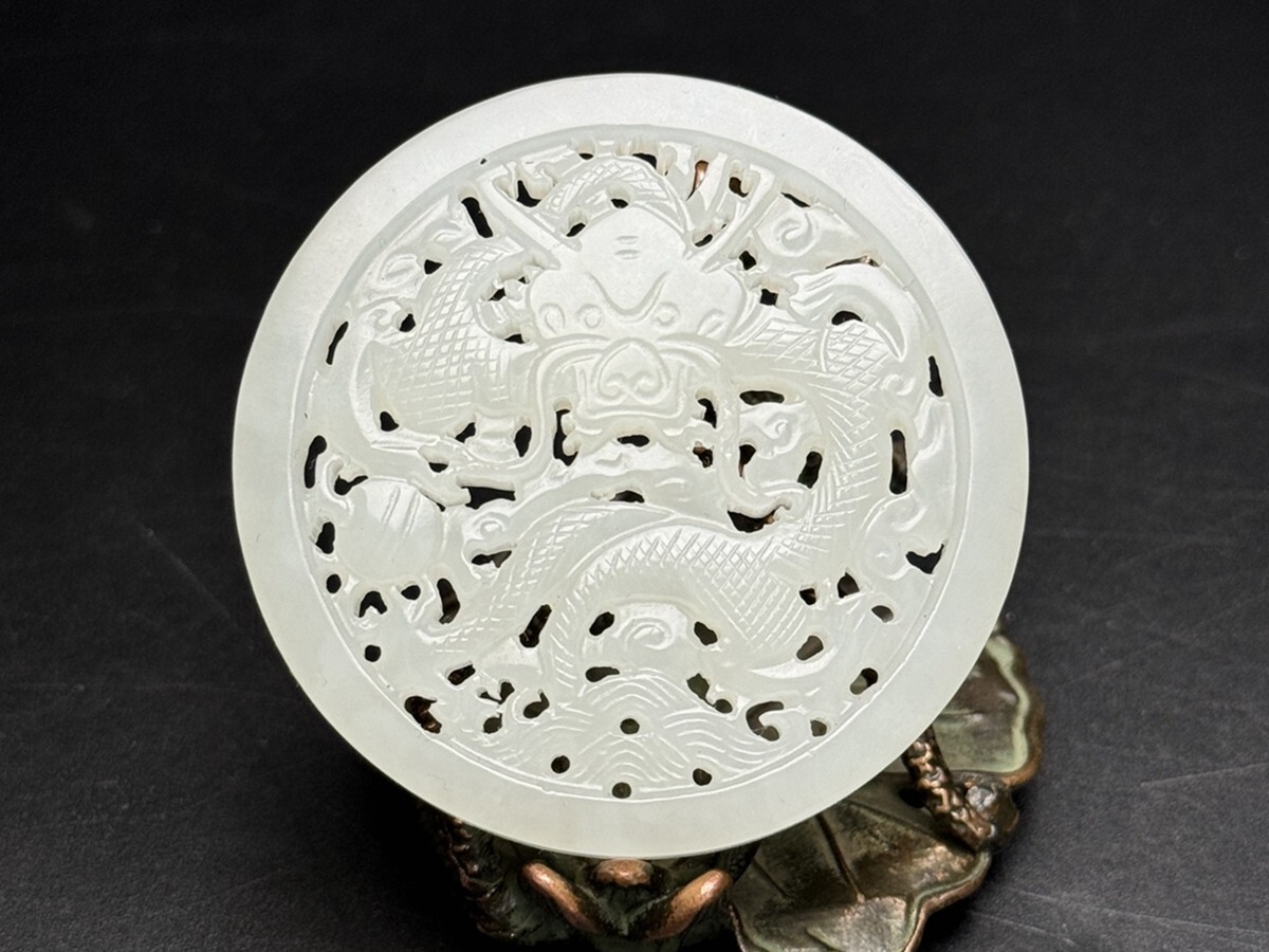 - 「時代物 和田玉 白玉彫り 龍行天下 龍佩」極細工 裝身具 賞物 中国古美術 旧蔵出