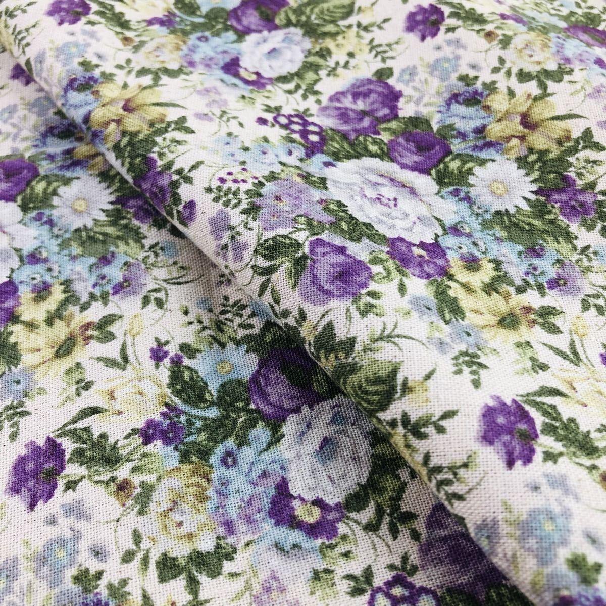 - yuwa 綿麻キャンバス 有輪商店 110×50 パープル はぎれ 花柄 コットンリネン 50cm