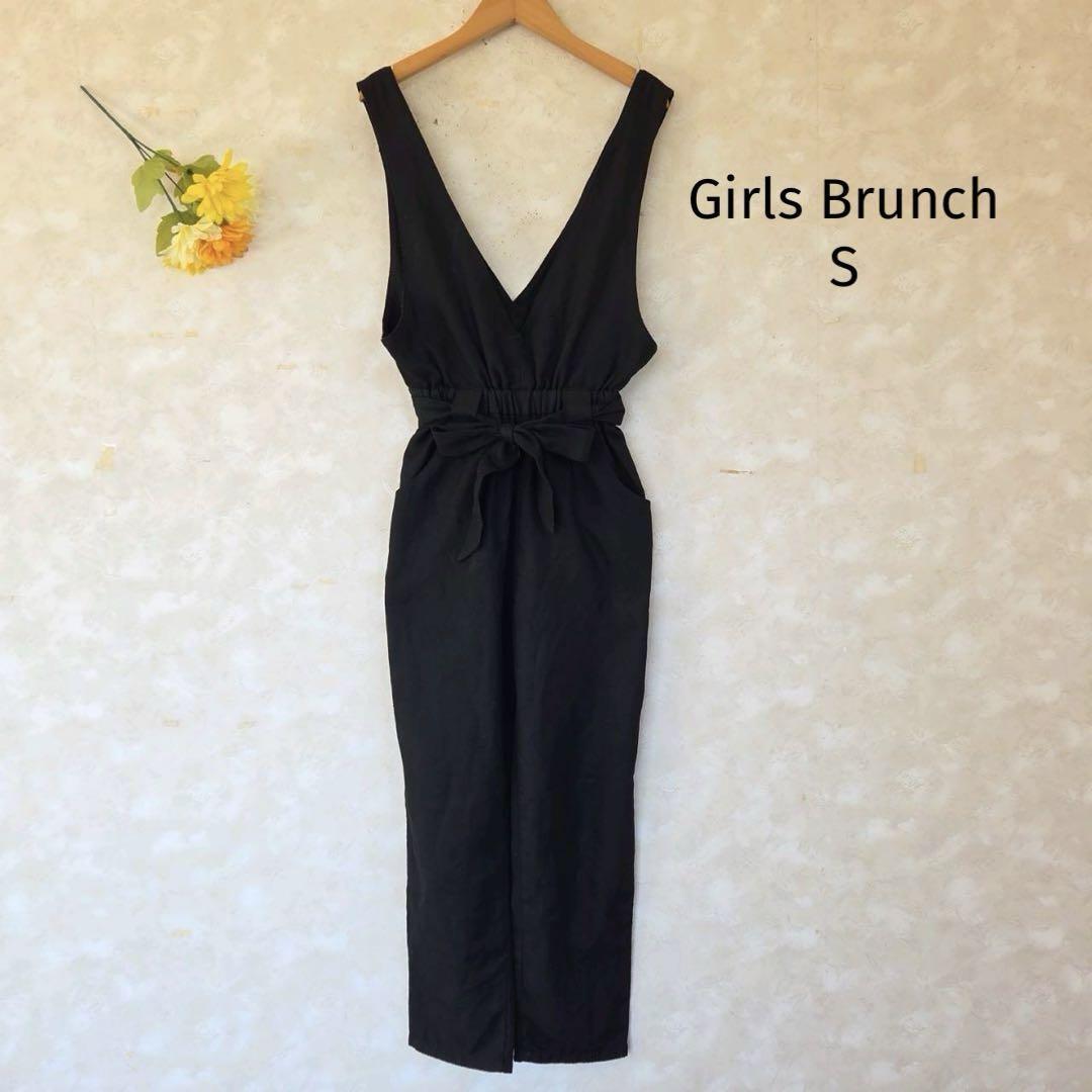 - Girls Brunch サロペット S ノースリーブ ブラック 黒 リボン