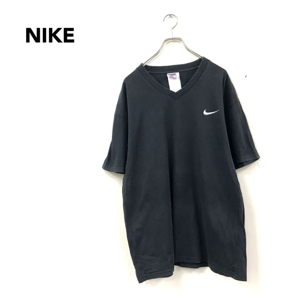> 2H1310-D◆90s◆ NIKE ナイキ 半袖Tシャツ カットソー ロゴ Vネック ◆sizeXL ブラック コットン 古着